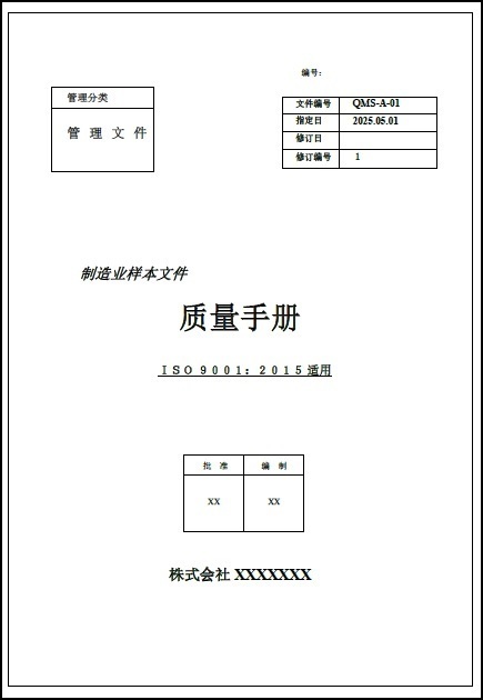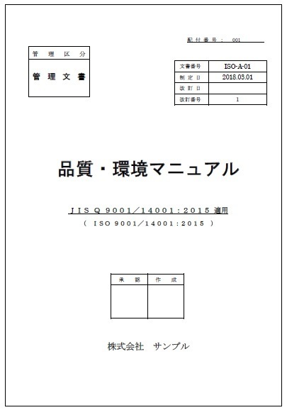 JISQ9100対応版のサンプル品質マニュアルは、こちらへ