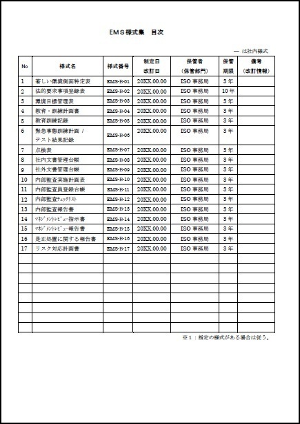 ISO14001の様式サンプルを有料にて、ワードファイル(※エクセルファイル)で提供中です。※様式によっては、エクセルファイルになります。