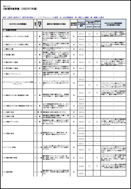 ISO27001:2022にも対応し、ISO27001:2022及びISO27017:2016の共通した適用宣言書のサンプル文書を有料にて、エクセルファイルで提供中です。